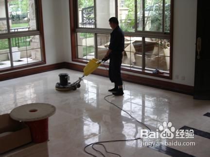 地板上蜡的原因:保护石材及地板;增加美观;防滑;清洁方便。地面分析:硬质地面花岗岩、大石、水磨石(底蜡和面蜡各两遍效果更佳)镜面砖、瓷面砖、釉面砖(打蜡效果不好,容易脱落);软质地面橡胶地板系列、PVC材质地板系列;木地板系列实木地板、复合地板。软质地面、木地板系列如需打蜡处理,最好使用免擦高光面蜡,且不用抛光。下面我们简单介绍如何对地板进行抛光打蜡,主要的方法步骤如下:1.工作人员需要穿戴好工作服等,并利用清洁工具对地板进行一次全部彻底的打扫;2.用水箱对地面清洁剂进行稀释,稀释过程中要按照说明的相关比例加水进行调配;3.在洁净干燥的地表面落底蜡两遍利,用风干机对地板风干;4.待蜡面彻底干燥后,用高速抛光机配合抛光垫进行均匀、匀速的抛光即可。